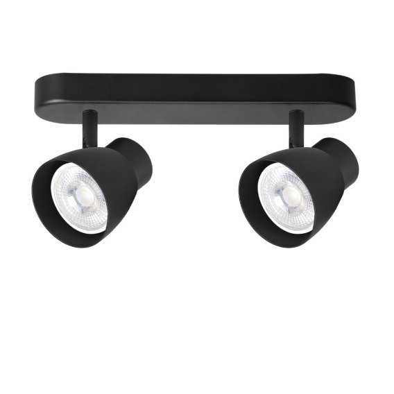 Styl i design: Nowoczesny spot z dwiema ruchomymi głowicami.Materiał: Metal.Wymiary: 26 × 7 × 10,5 cm.Źródło światła: 2 × GU10, max LED 8W (wymienne).Kolor: Czarny mat.Zastosowanie: Salon, kuchnia, biuro, korytarz, garderoba - oświetlenie punktowe lub dekoracyjne.