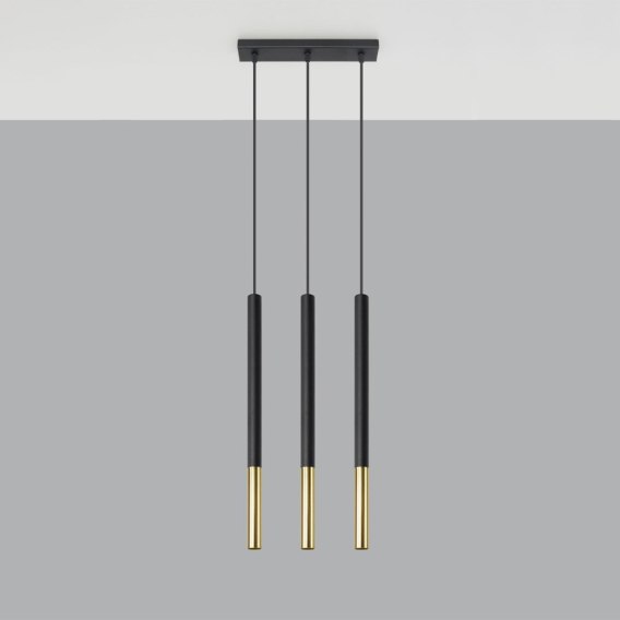 Źródło światła: G9, 3x max 8W LED, ~230V, 50Hz, IP20, klasa ochronności IŹródło światła nie jest w komplecie.Wymiary: 30/5/90 cmWymiary klosza: 2,5/49 cmMateriał: stalKolor: czarny, złoty