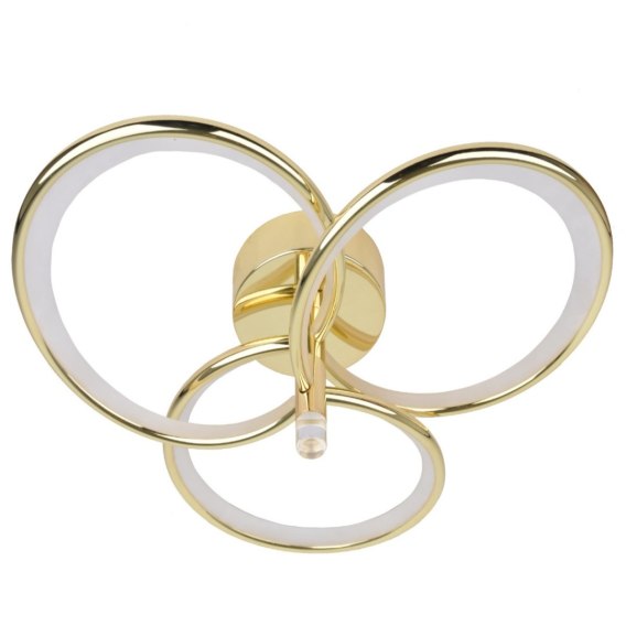 Azina Plafon LED 3 w kolorze złotym to nowoczesne oświetlenie sufitowe o eleganckiej i dynamicznej formie. Lampa wyposażona jest w zintegrowane źródło światła LED, umieszczone w trzech geometrycznych pierścieniach z opalowym dyfuzorem, które zapewniają intensywne, a jednocześnie komfortowe i równomierne oświetlenie wnętrza.