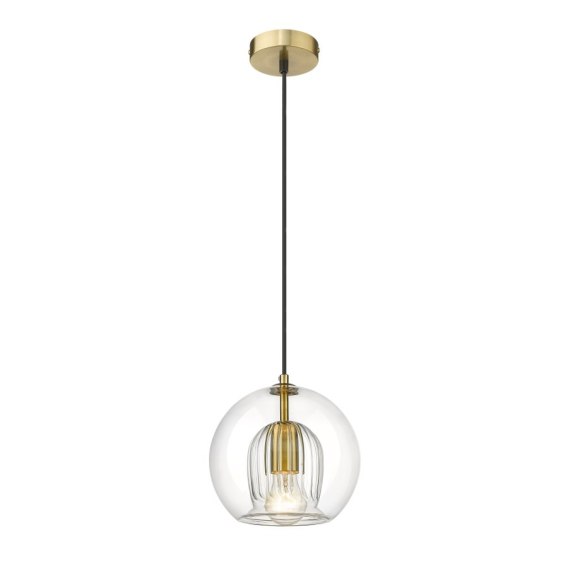 Lampa wisząca Arette jest wykonana z transparentnego szkła i metalu w złotym kolorze. Takie zestawinie barw jest niezwykle eleganckie, klasyczne i ponadczasowe. Lampa Arette wyróżnia się nietypową budową klosza. Klosz tej transparentnej lampy wiszącej ma kształt kuli, która posiada ozdobnie żłobione miejsce na żarówkę o standardowym gwincie E27. Złote dodatki wykonane z metalu nadają lampie Arette luksusowego wyglądu. Takie zestawienie barw, kształów i materiałów sprawia, że ta złota lampa wisząca będzie idealną propozycją do nowoczesnych wnętrz. Sprawdzi się również w aranżacjach o nieco industrialnym charakterze.