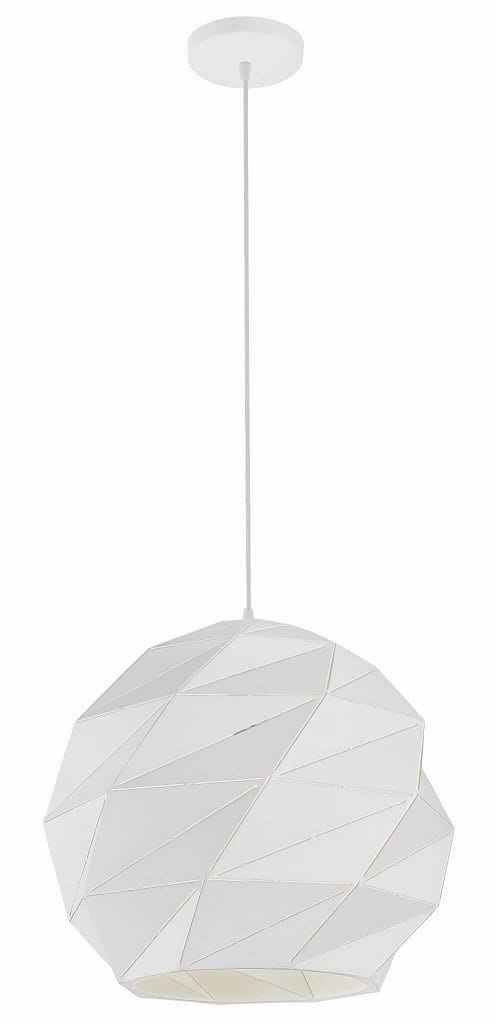 Biała lampa wisząca kula z kolekcji Reus została wykonana z metalu. Posiada ozdobny wzór przywodzący na myśl styl glamour. Klosz lampy posiada delikatne wycięcia, które w przyjemny sposób rozpraszają światło. Powierzchnia lampy została wykończona w eleganckim macie. Kształ i wykończenie tej białej lampy wiszącej, powodują, że będzie ona doskonałym wyborem do pomieszczeń urządzanych zarówno w stylu glamour, nowoczesnym, jak i klasycznym. Doskonałym uzupełnieniem lampy będą kinkiety, bądź spoty, które będą stanowiły dodatkowe źródło światła.
