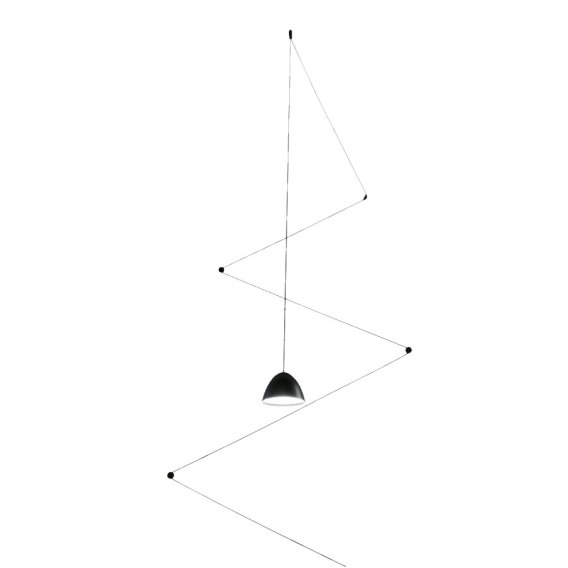 Zig - Zag - to lampa skromna, zupełnie prosta choć bardzo powyginana, minimalistyczna a zarazem nowatorski i niezwykle nowoczesna. Jest to mini, czarny klosz, którego przewód wynosi - uwaga, ponad osiem metrów. Ma to na celu zamontowanie przewodu w takim układzie na jaki ma się ochotę. Na przykład właśnie w kształcie zygzaka :) Ten produkt oświetleniowy, jest wykonany z metalu w kolorze czarnym. Daje jedno źródło światła LED o neutralnym, dziennym odcieniu. Pasuje do średniej wysokości wnętrz, ale najbardziej jednak odpowiednimi dla tego modelu pomieszczeniami, będą wysokie i przestronne salony z np. otwartą kuchnią. Świetnie sprawdzi się także, w młodzieżowym pokoju, czy w aranżacjach z  asymetrycznymi sufitami. Jeśli podczas wybierania oświetlenia, kierujecie się praktycznością a przy tym stylem i minimalizmem, to lampka Zig-Zag, jest właśnie dla Was!