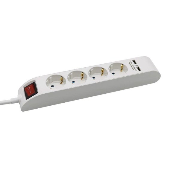 Listwa V-TAC 4 Gniazda 1,4m , Podświetlany Włącznik, 2xUSB 1.5mm2 BIAŁA VT-1144-2