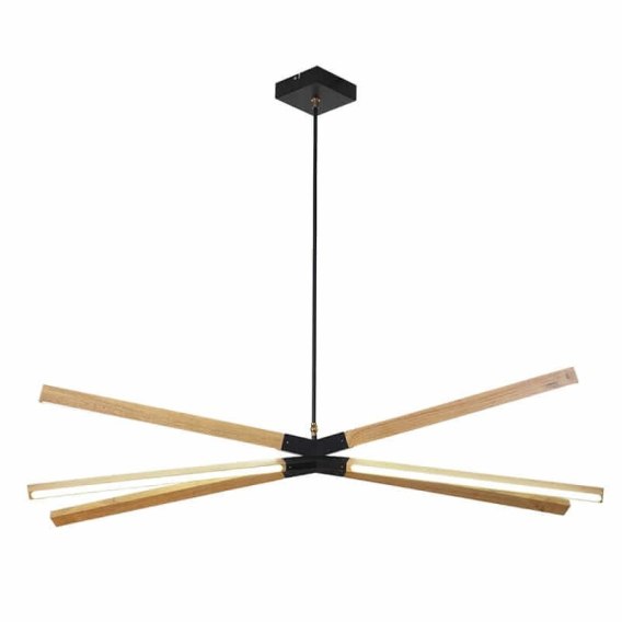 Lugano 6 wisząca 97 cm - to bardzo nowoczesny rodzaj lampy sufitowej, której połączenie materiałów, z jakich została wykonana są bardzo na czasie. Mowa tu o drewnie i metalu w kolorze czerni. Lampa Lugano składa się z sześciu, drewnianych listewek z wbudowanym światłem LED, którego zaletą jest różnorodny kąt padania. Całość zamontowana na stelażu w kształcie kwadratu. Lugano, świetnie dopełni wystrój Twojego wnętrza, jeśli w Twojej aranżacji pomieszczenia występuje drewniane elementy. Świetnie sprawdzi się zarówno w salonie jak i kuchni, gdzie idealnie będzie współgrała z bambusowymi misami, postawionymi na kuchennym blacie. Pomysłów na tę lampę jest mnóstwo! Występuje także w innych wariantach, np. z mniejszą ilością źródeł światła. Stwórz piękne i niebanalne oświetlenie Twojego domu!