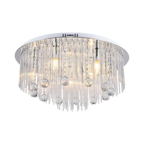 Współczesny design idealny do nowoczesnych wnętrz. Eleganckie wykończenie w kolorze chromu dodaje stylu i elegancji. Solidna i trwała konstrukcja z kryształu zapewnia długowieczność i wytrzymałość. Wyposażona w 9 oprawek E14 (żarówki nie są w zestawie). Maksymalne obciążenie 5x40W gwarantuje odpowiednie oświetlenie. Uniwersalne zastosowanie, idealna do hoteli, domów mieszkalnych, restauracji oraz oświetlenia komercyjnego.