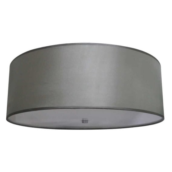 Rodzaj lampy: Plafon z kolekcji Girona. Wymiary: Średnica plafonu wynosi 80 cm. Materiał i kolorystyka: Plafon został wykonany z usztwnianego materiału / tkaniny w szarym kolorze. Źródło światła: Plafon posiada wejście na sześć żarówek o typowym gwincie E27.