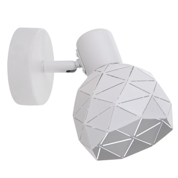 Biały spot Reus 1 to elegancki element oświetleniowy, wykonany z wysokiej jakości metalu. Charakteryzuje się stylowym wzornictwem nawiązującym do estetyki glamour. Klosz zdobiony jest delikatnymi wycięciami, które tworzą subtelne efekty świetlne, przyjemnie rozpraszając światło w pomieszczeniu. Całość została wykończona w eleganckim macie, co dodaje mu elegancji.