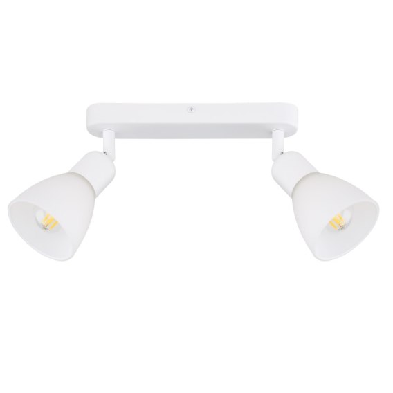 Spot z białego metalu z dwoma reflektorkami przeznaczonymi na żarówki o gwincie E14. Uniwersalny kolor spotu oraz jego ponadczasowy design sprawiają, że lampa znajdzie zastosowanie w wielu aranżacjach.