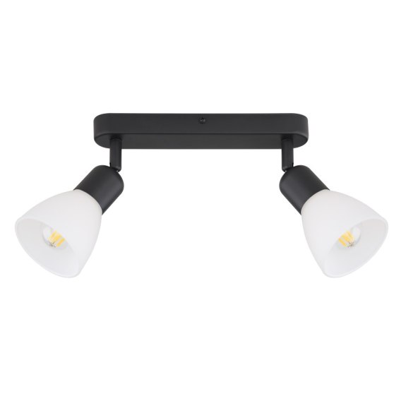 Czarno - biały spot z dwoma reflektorami, wykonany z metalu. Spot przeznaczony jest na dwie żarówki o gwincie E14. Uniwersalna kolorystyka i ponadczasowy design sprawiają, że lampa będzie idealną propozycją oświetleniową do wielu aranżacji i pomieszczeń.