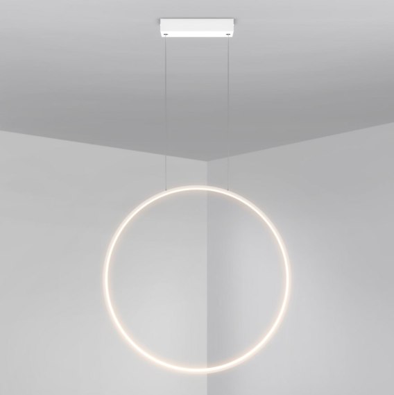 Duża lampa wisząca Mirror w białym kolorze to nowoczesne oświetlenie w formie okręgu ze zintegrowanym, ciepłym światłem LED. Jej minimalistyczna konstrukcja z białego metalu doskonale komponuje się z nowoczesnymi aranżacjami wnętrz. Dzięki uniwersalnej, białej barwie znajdzie zastosowanie w pomieszczeniach o dowolnej kolorystyce. Lampa ta będzie się pięknie prezentowała w przestronnych łazienkach. Lampa wygląda niezwykle wyjątkowo zarówno jako pojedynczy element, jak i w zestawieniu z innymi lampami z serii Mirror.